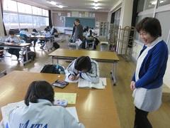 〇市教委の事業で、今週は「放課後学習講座」を研修室で開講しています。 地域の人材講師や塾講師などが指導者4名が来校し、1日約20名(1年,2年)の生徒たちが参加してテスト勉強をしていました。