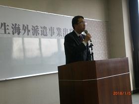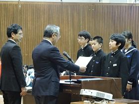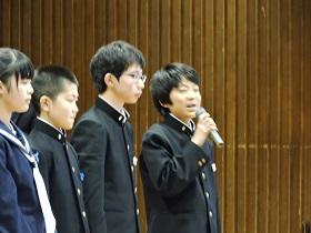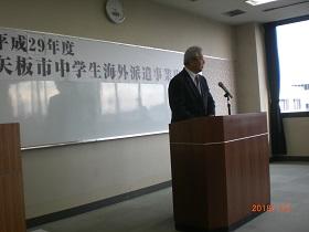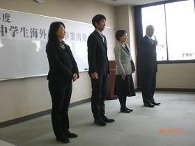到着の報告では、団長の村上教育長さんの挨拶の後、派遣生徒を代表して本校の平野さんが、活動を振り返っての感想と引率でお世話になった方へのお礼の言葉と派遣に際して応援してくれた家族への感謝の気持ちを立派に述べました。