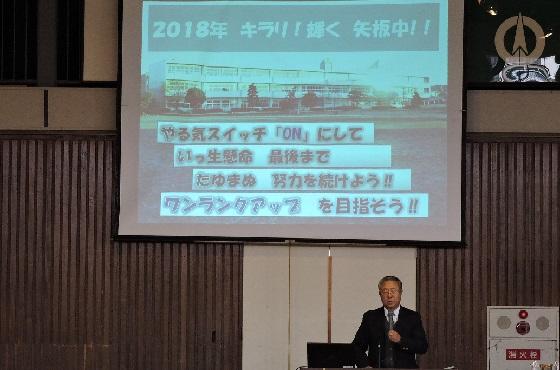 また、2学期後半は各学年とも、締めくくりのまとめの大切な時期であることを強調し、特に、「矢板中学校をより良くするんだ」という気持ちを持つとともに、自分の目標をしっかり持って、目標に向かって「たゆまぬ努力」を積み重ねる気持ちを持ち続けることが大切という話をし、戌年にちなんで“ワンランクアップ”することを話しました。