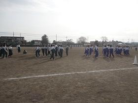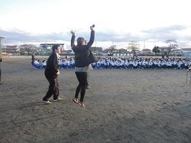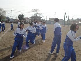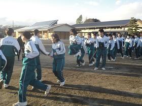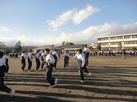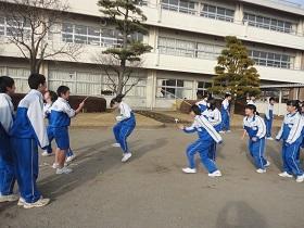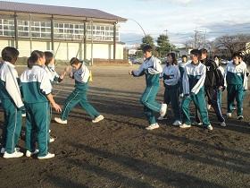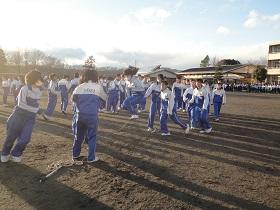 高原山には雪雲がかかり、冷たい高原下ろしが吹き付ける中でしたが、放課後を利用し生徒会主催のスポーツ大会が開催されました。寒さを物ともせず、体育委員会が中心となって「大縄八の字回旋跳び」が行われました。