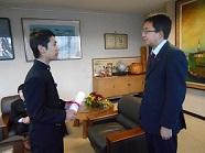 届けに行った、市役所や教育委員会、警察署などでは、温かい言葉をいただくとともに、記念写真も撮っていただきました。