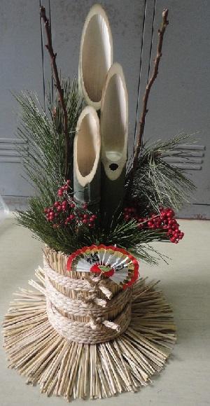 さて、新しい年を迎える準備は進んでいるでしょうか?本校では、毎年松飾りを適応指導教室からいただいております。松飾りとは門松を指しますが、今年も適応指導教室「チャレンジハウス」通級生徒が作成した“門松”をいただきました。この門松は、歳神様が迷わないようにと目印として家の前に置くものといわれています。この後、大掃除を済ませ、きれいになった玄関に設置したいと思います。ありがとうございました。