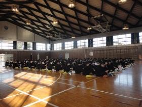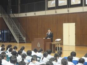 続いての、学校長からの話は、新しい年を迎えるに当たっての心構えや矢中生の課題となっている交通安全についての話をしました。そして、明日からの“冬休み”を迎えるに当たって、生徒には