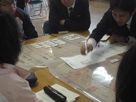 12月21日(水)の放課後、現職教育の職員研修で「学校教育における防災減災意識の向上と取組み」(避難所運営ゲームHUG)を行いました。