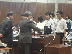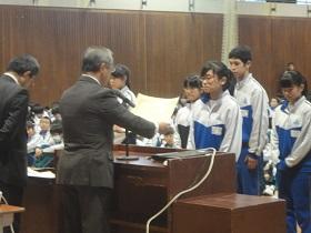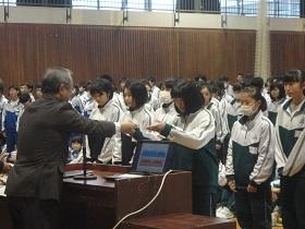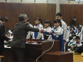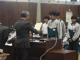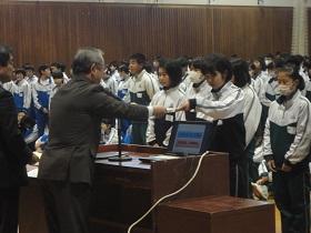 初めに、先日行った“計算コンクール”や各種大会・コンクール、作品展などの表彰を行いました。