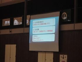「学校で何が出来るか」を考えたところ、「あいさつの向上」と「メディアの使い方の改善」ということが出ました。具体的には、「あいさつ~笑顔で目を見て大きな声で~」「ノーメディアから生活リズムをつくる」などでした。
