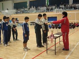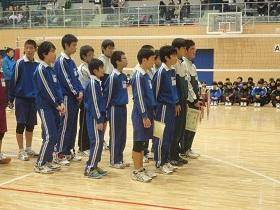 “女子バレーボール部”は、1・2回戦を順調に勝ち上がり、片岡中との決勝戦では、1セット目はサービスエースなどで相手チームを圧倒しましたが、続く2セット目は、逆に相手のレシーブ力と粘りから、流れを引き戻せずセットを取られてしまいました。3セット目は、序盤から拮抗したゲーム展開で、なかなかリズムがつかめず息を呑むプレイが続いていました。終盤リードを許してしまい、なんとか追いつこうと懸命なプレイが繰り広げられましたが、今一歩及ばず、1対2で残念ながら敗退しました。試合後、選手達は悔し涙を見せていましたが、今回の“準優勝”も立派な成果です。是非、今回の課題を振り返るとともに反省点を活かし、更にチーム力をアップしていってください。“準優勝”おめでとうございました。