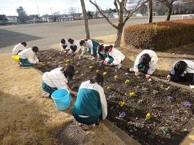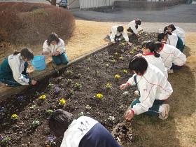 28日には、吹奏楽部が学内コンサートを行い2016年の部活動納めを行いましたが、他の部も練習場や部室の大掃除などを行い、新年を迎える準備を行っていました。ソフトボール部は、顧問教師とともに、花壇の除草やパンジーの手入れを行ってくれていました。花いっぱい運動への協力に感謝いたします。