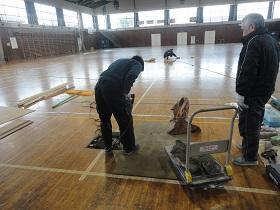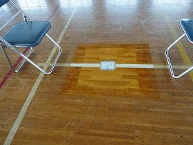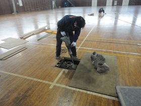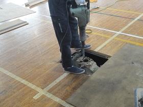 体育館のバレーボール支柱受けが老朽化し、不安定になっているので危険ということで、先日、床下の支柱受けの取替工事を行いました。