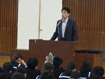 整然として話を聞く矢中生