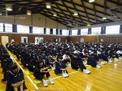 集合したときは、いつもこのように下を向いて黙想しています!静かです(^_^)