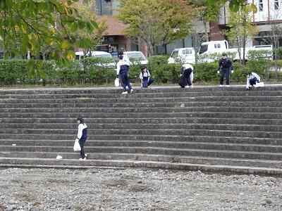 川の中でもボランティア!