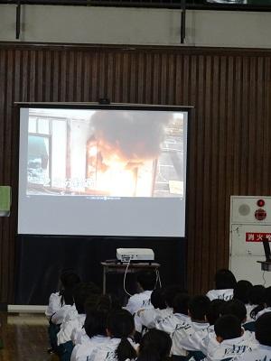 1年生はビデオで「火災の恐ろしさ」