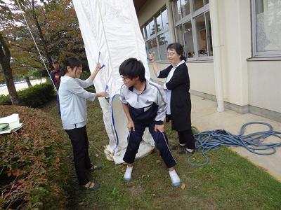3年生は「避難シューター体験」