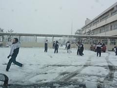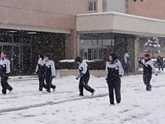 校庭には約6cmの降雪がありますが、天気予報では、水分の多い雪で今後は「みぞれ」から「雨」になるようです。