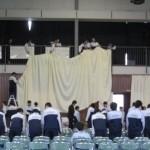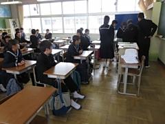 写真1,2,3枚目・・・修学旅行に持って行く「大きな荷物」を持参し、運送業者に京都の旅館まで配送をお願いしました。朝、持参した荷物を男女別に分かれて3年の職員が不要な物や危険物等がないか、簡単に確認させていただきました。3日間、安全な修学旅行にするためには、必要なチェックです。ご理解ください。
