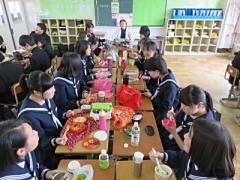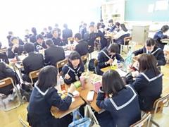 <校長室コラム> 「おはようございます。」3年は、修学旅行2日目の朝を迎えました。生徒たちは、6時32分に朝食を大広間で食べました。 食欲旺盛の子がいれば、少ししか食べられない子もいます。