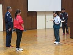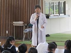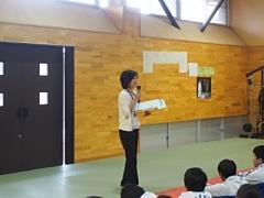 「VTR」後、交通教育指導員の 小野﨑 洋美さんから、「路側帯の種類」の説明と自転車の乗り方や整備の仕方などの指導がありました。