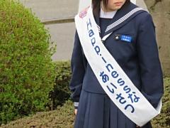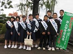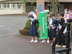 今朝は、市から購入していただいたタスキ「Happinessなあいさつ」を着けてあいさつをしていました。タスキをしたことで、生徒会役員たちはより意欲的に、大きな声で「おはようございます。」とあいさつを交わしていました。
