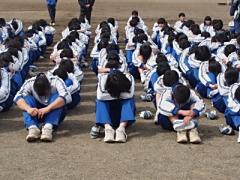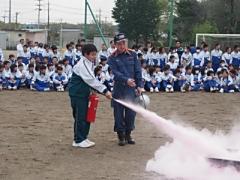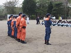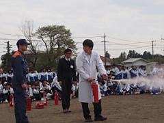 避難放送のあと、各クラスは、私語やふざけなどもなく、校庭南側に集合ができました。消防職員の講評では、「何名かおしゃべりが見られた。」という話がありました。ただし、昨年度と比べると、訓練をする態度(構え)が、どの学年もできてスムーズな避難ができていました。今回は、3年が避難からの「整列」が、1番はやくできていました。最上級生としての、「自覚」と「プライド」を感じる瞬間でした。
