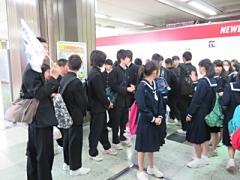 出かける前に、安全面を考慮して、職員スタッフが男女に分かれて荷物チェックを行いました。携帯電話1台と女子の化粧品2品、帰校まで学年主任が預かることにして、スタートしていきました。