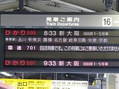 東京駅から、東海道新幹線「ひかり505号」、8時33分発に乗車しました。
