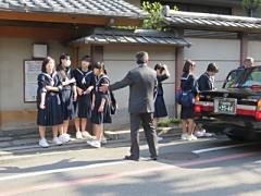 <修学旅行2日目2「終日、班別行動」> 8時30分から、1組の1班から順番に、タクシーで、生徒たちが事前に考えた行程に従い「班別行動」に出かけました。