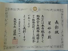 矢板中職員、星 妙子さんと鈴木 洋さんは、市役所勤務20年の表彰を授与されました。「おめでとうございます。」