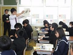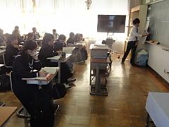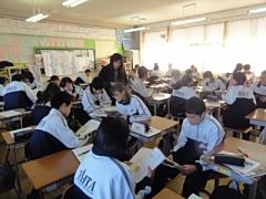授業では、「東京オリンピック」など、多くの写真資料などを用意し、モチベーション高く、大きな勢いのある声で、1組の生徒を笑顔にしながら、若さでリードしてくれていました。2020年、6年後「東京オリンピック」開催に当たり、自分がどのようなスタンスでスポーツと関わるのか、考える大切な授業になったと思います。