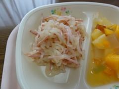 今日の給食では、「青首大根」を使い、ハムと混ぜたサラダになっています。
