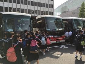 お車で、お迎えの保護者の方は、校庭が駐車場となっていますので、到着する大型バスとの交錯を避けるよう、ご協力をお願いいたします。
