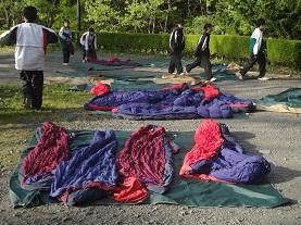 休憩を終えた生徒たちは、着替えやペットボトルなどの入ったリュックサックを背負って元気いっぱい出発していきました。