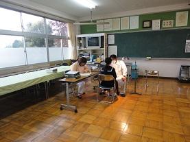 今日の午前には、研修室を使って、健康診断の中の血液検査を行いました。