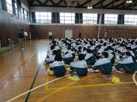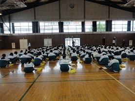 今朝は、学年朝会が行われました。3学年は体育館で今週末に行われる「地区春季大会」に向けての意気込みを、各部の代表が発表していました。