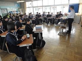 4月28日の5校時には全体指導を行い、進路指導主事から「キャリア・スタート・ウィーク」の趣旨や“事業所希望調査”を行うことについて説明しました。生徒は、真剣な表情で話に聴き入っていました。