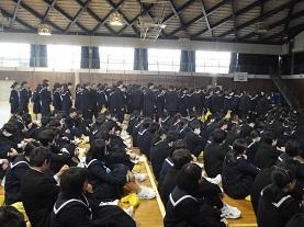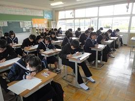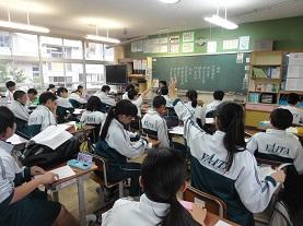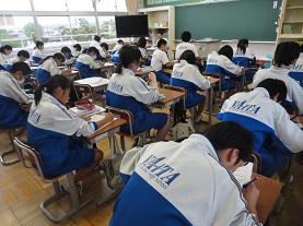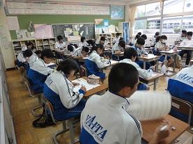 本校の今年度の学校課題は「確かな学力を身に付け、主体的に学習に取り組む生徒の育成」~「学びの共同体」学び合い学習の展開を通して~と設定し、日頃の授業の中で生徒たちが互いに学び合える学習への取組を通して、各教科等の学習の基本ともなるコミュニケーションの能力を身につけることを目指して取り組んでおります。
