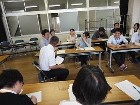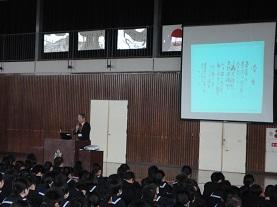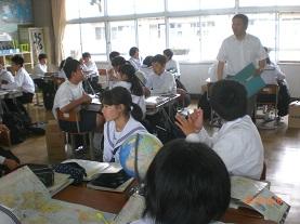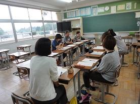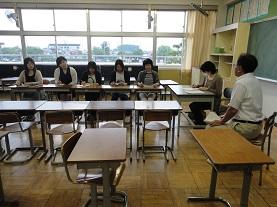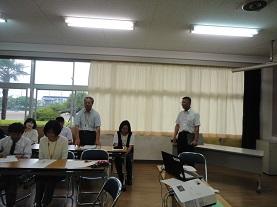 放課後には研修室で『「学びの共同体」を進めるにあたっての留意点』と題してご講話をいただき、今まで実践してきた具体的な手立てや成功例などを示しながら、先生方への模擬的な授業を組み込み、班別演習などを通して助言をいただきました。「学びの共同体」の授業改革を図ることにより、今後の教師力向上や生徒の学力向上への足がかりとなりました。