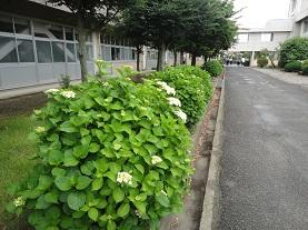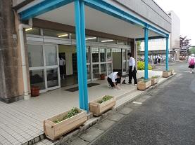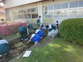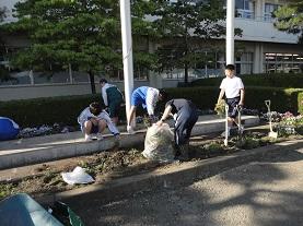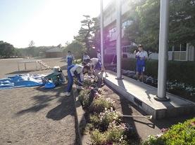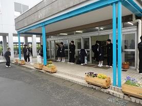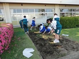緑化委員会では、春先から今までの長い間、我々の目を楽しませてくれた校舎前の花壇やプランターのパンジーやビオラの苗を整備しました。