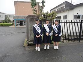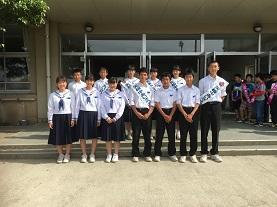 本校の都合で一日ずれてしまいましたが、昨日は衣替えということもあり、爽やかな夏バージョンのセーラー服とワイシャツの白がまぶしいほどでした。今回は、3年生も加わり生徒会役員12名が昇降口脇で矢小の児童とともに“あいさつ運動”を展開しました。夏バージョンの制服のような爽やかな「おはようございます!」の声が響いていました。