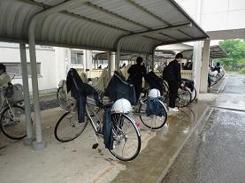 今朝は、生徒の登校時間には寒冷前線の影響からか強い雨が降っており、子ども達の靴の中はぐしょぬれの状態でした。雨が降る中でしたが、各学年の昇降口前で“あいさつ運動”を展開しました。今回も「生徒会役員」の他にも「学級委員」のメンバーがあいさつ運動に加わり、雨を吹き飛ばすような爽やかな「おはようございます!」の声をかけていました。