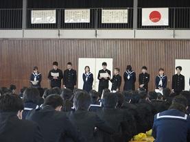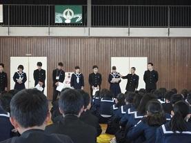 各部の部長さんは、大会に向けての緊張感を漂わせ、今までの練習や大会等を振り返り、顧問の先生方からの日々の教えを大切にしながら、感謝の気持ちを込めての決意を述べていました。