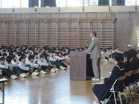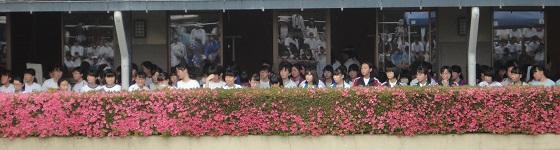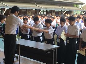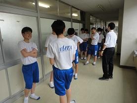 朝会の最後には、担当の先生からの日々の生活の諸注意や大会に向けての心構えなどの話がありました。
