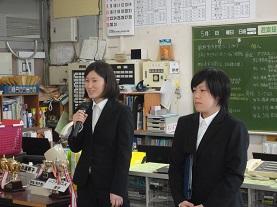 今日から、6月10日までの3週間と17日までの4週間、本校卒業生2名が教育実習を行います。今朝の職員打合せの冒頭、学校長より実習生の紹介がありました。実習生は緊張の中にも落ち着いた口調で、あいさつをしっかりとこなしていました。
