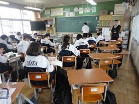 まず初めに、4校時の授業を参観いただき、普段の授業の様子をご覧いただきました。
