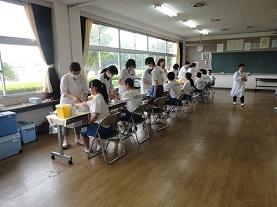 矢板市では小学4・6年生と中学生を対象に実施していますが、中学校では、1・2年生は小児生活習慣病予防検診と貧血検査検を行い、3年生は貧血検査のみを行いました。検査前の生徒の表情からは、若干緊張の様子が伺えましたが、保健衛生事業団の職員の方が、少しでも緊張がほぐれるように優しく血圧検査や採血を行ってくださっていました。
