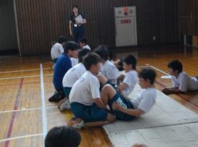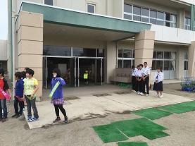 学校長からは、素早く安全に避難できたことの振り返りと避難の合言葉『お・か・し・も』に「な」もつけることを提案しました。『集団行動』をとる際に人数確認がいち早くできるように「な」は「並ぶこと」ということを説明しました。