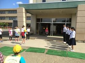 6月1日(水)、先週から取り組んでいる矢板小学校との小中連携事業の一つの「あいさつ運動」を行いました。