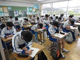 また、帰りの会の前の10分間「スタディ10」を利用して、学習への意識づけを図ることを目的に、学芸員会が作成した「中間テスト対策ミニテスト」も行われていました。