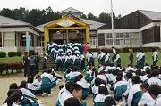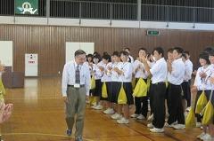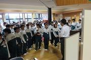 〇写真のとおり、キャリアスタートの2年を除く1年と3年生が朝、体育館に集合し「離任式」を行いました。 私が、中山先生の半年間の勤務のようすなどを紹介し、中山先生の方から離任のお話をいただきました。離任の話のはずが、先生の趣味・特技である「大きなカメのこわい話」をしていただき、面白いオチで話が終わりました。