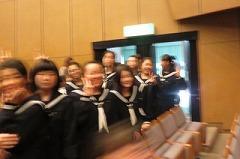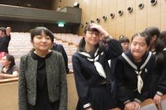 〇午前中が「合唱、重唱の部」、午後が「合奏、重奏、管弦合奏の部」になっていました。吹奏楽部は、女性三部で曲目「プレゼント」を見事に歌い上げました。合唱中の写真撮影は、「禁止」になっていたので、出演後自席に戻ってきたときの部員たちの表情です。